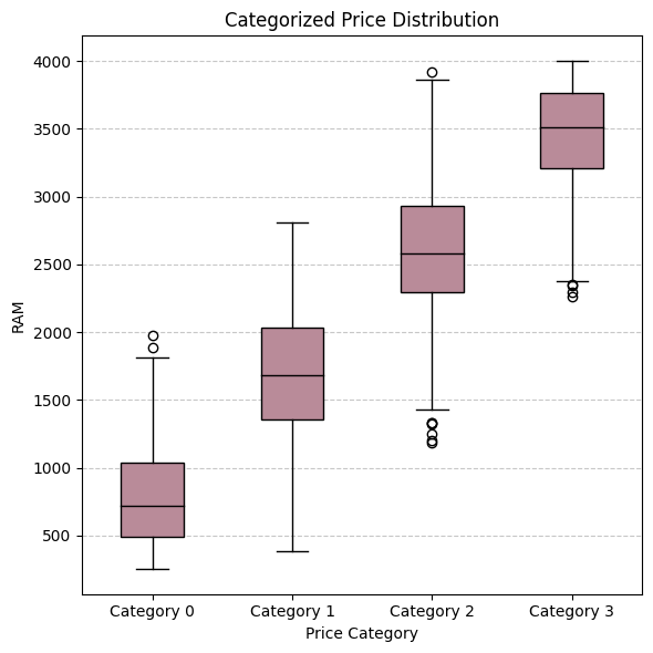 Box-and-whisker plot (RAM vs. Price Range)
