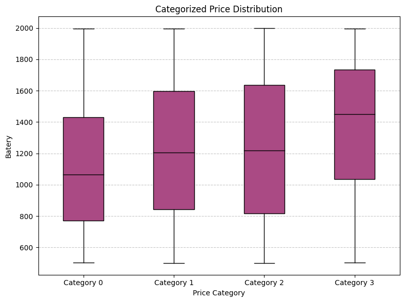 Box-and-whisker plot (Battery vs. Price Range)