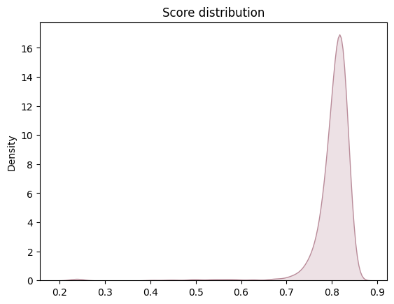 To assess the performance of our model, we implemented rigorous validation methods along with the accuracy metric. This metric was chosen because all classes carry equal weight in our classification problem. Additionally, we ran the validation code 1000 times to obtain a more robust distribution of the metric. On average, our accuracy hovers around 0.80, indicating a high level of precision in classifying the samples